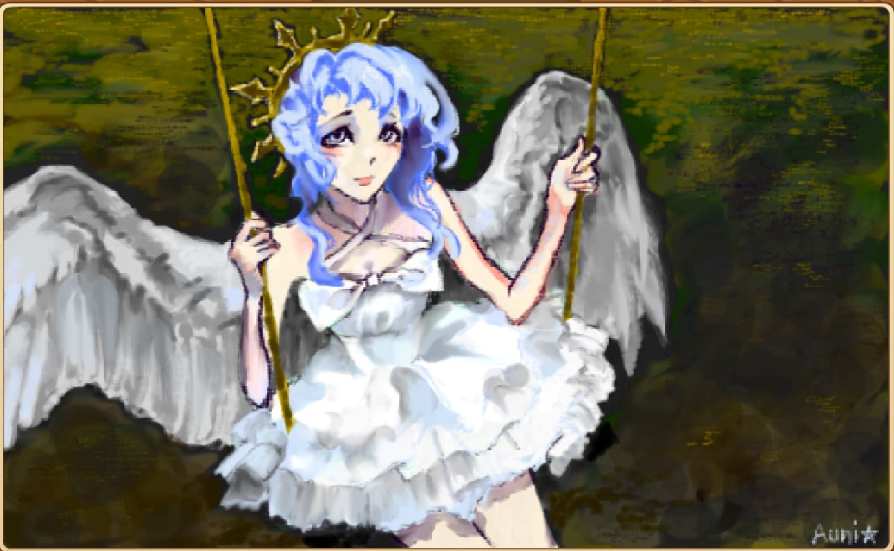 I really just wanted to draw an angelic character on a swing so I just made my own character. I'm very proud of this drawing and its impressive I made this on Animal Jam LOL.